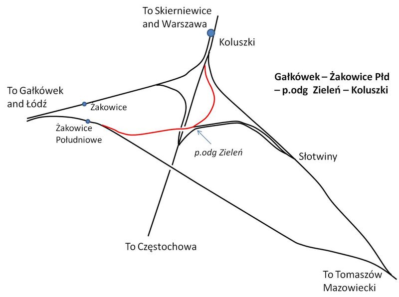 Route of PSUL Gałkówek – Żakowice Płd – p.odg. Zieleń – Koluszki