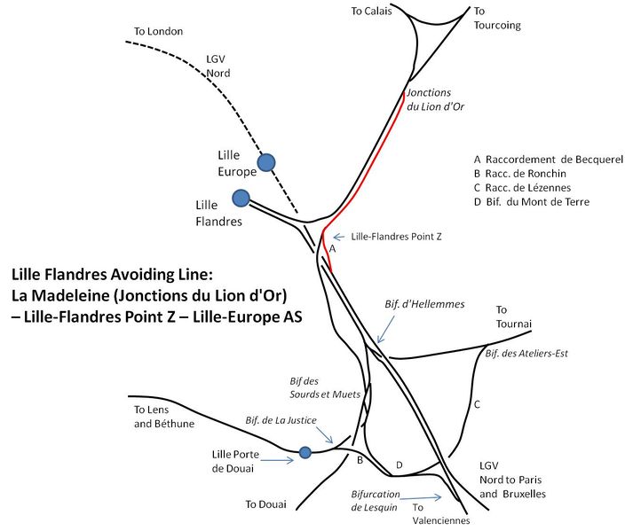 Route of PSUL Lille Flandres Avoiding Line: La Madeleine (Jonctions du Lion d'Or) – Lille-Flandres Point Z – Lille-Europe AS