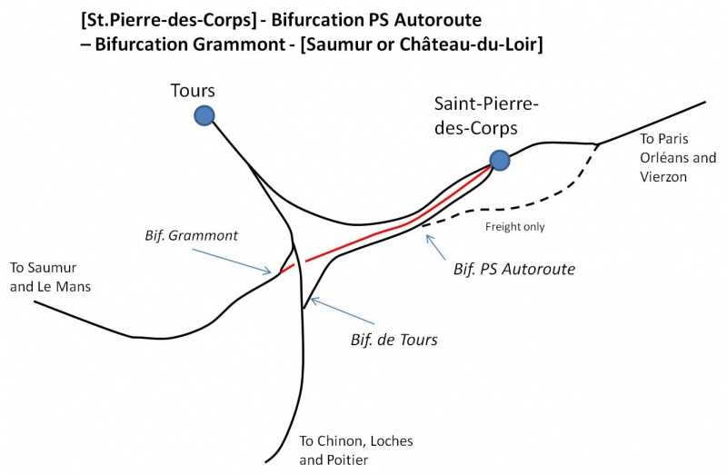 PSUL route for [St.Pierre-des-Corps] - Bifurcation PS Autoroute – Bifurcation Grammont - [Saumur or Château-du-Loir]