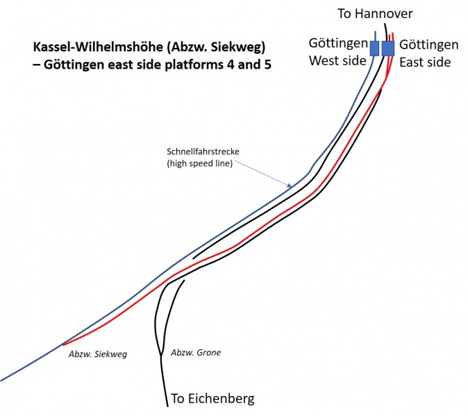Kassel-Wilhelmshöhe (Abzw. Siekweg) – Göttingen east side platforms 4 and 5