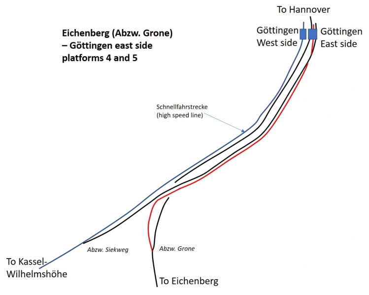 Eichenberg (Abzw. Grone)– Göttingen east side platforms 4 and 5
