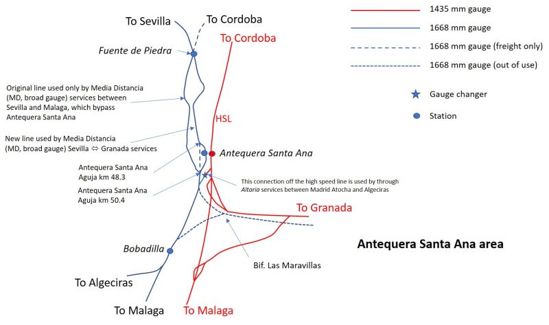 Modified map showing layout and obscure routes in the Antequera Santa Ana area