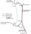 - Trains using platform 6 can run via either curve but are more likely to use the "long" curve as use of the "short" curve requires the train to cross the layout on the flat at the east end of the station.